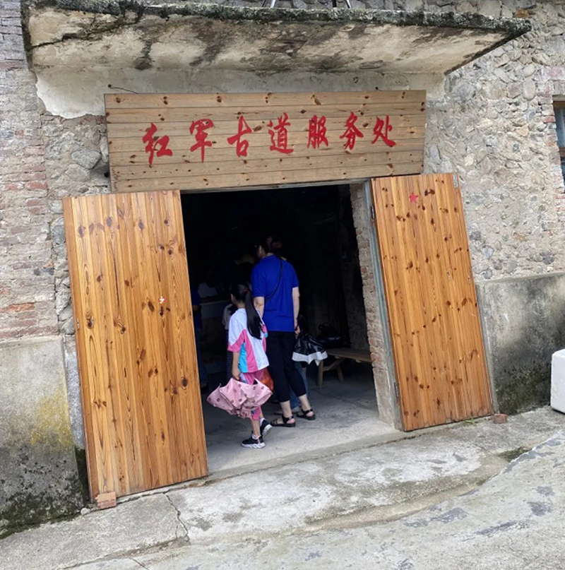 到达红军路服务部,我们换上红军军服,整装待发,听从党支部领导指挥。全体员工在红军石宣誓之后,便徒步踏上红军路,寻找红色古道留存的不朽记忆