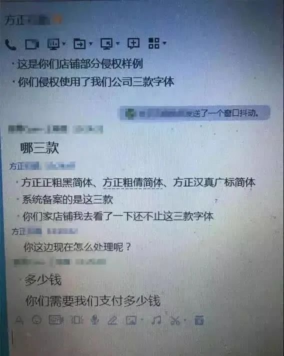 从上面截图的对话中可看出:该卖家店铺涉及侵权的恐怕还不止这三款字体,并询问卖家如何解决
