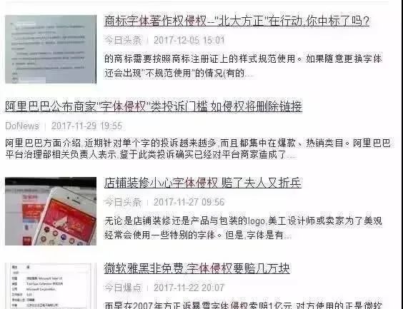 当你在浏览器里搜索“字体侵权”,你会发现,仅一个月内就有4条相关新闻。