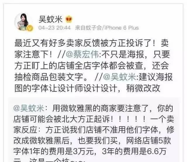 还有人晒出了自己使用“微软雅黑”也会被告知侵权...