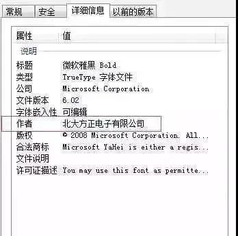 实际上,“微软雅黑”是由“北大方正电子有限公司”设计开发的字体作品,方正公司通过协议的形式授权微软公司使用。